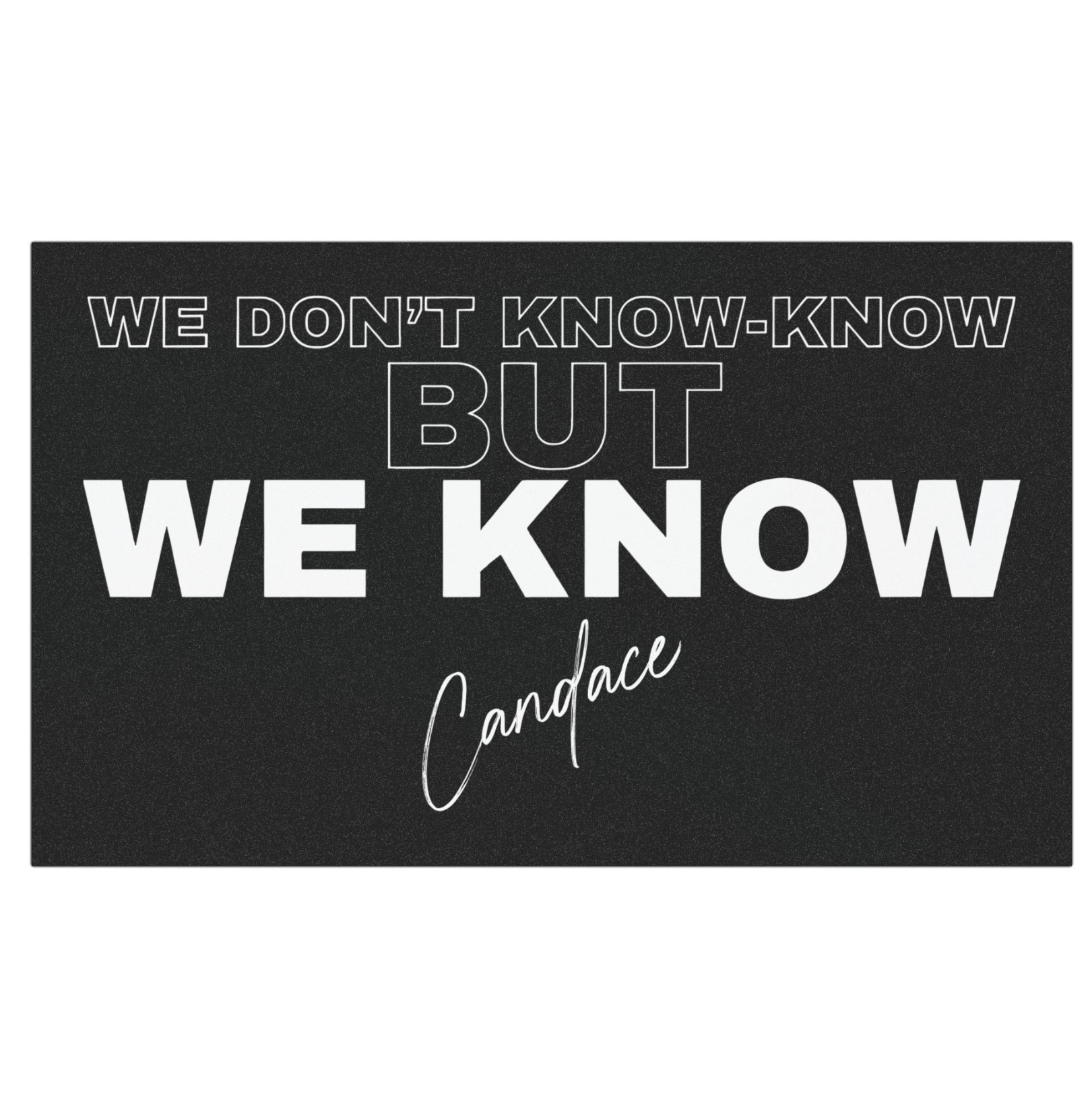 Design: Bold “WE DON’T KNOW-KNOW BUT WE KNOW” political slogan