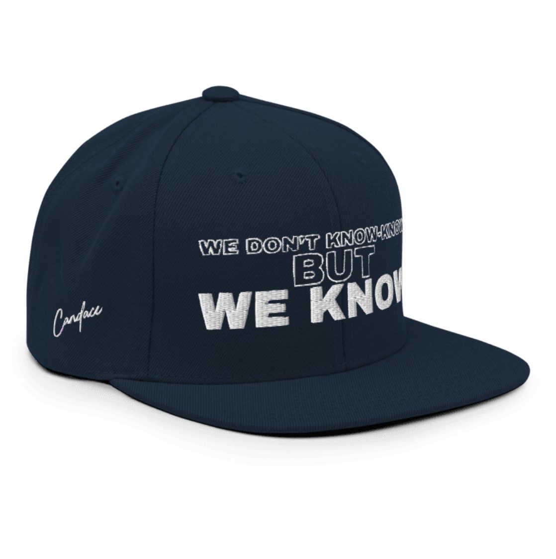 Design: Embroidered “WE DON’T KNOW-KNOW BUT WE KNOW” slogan
